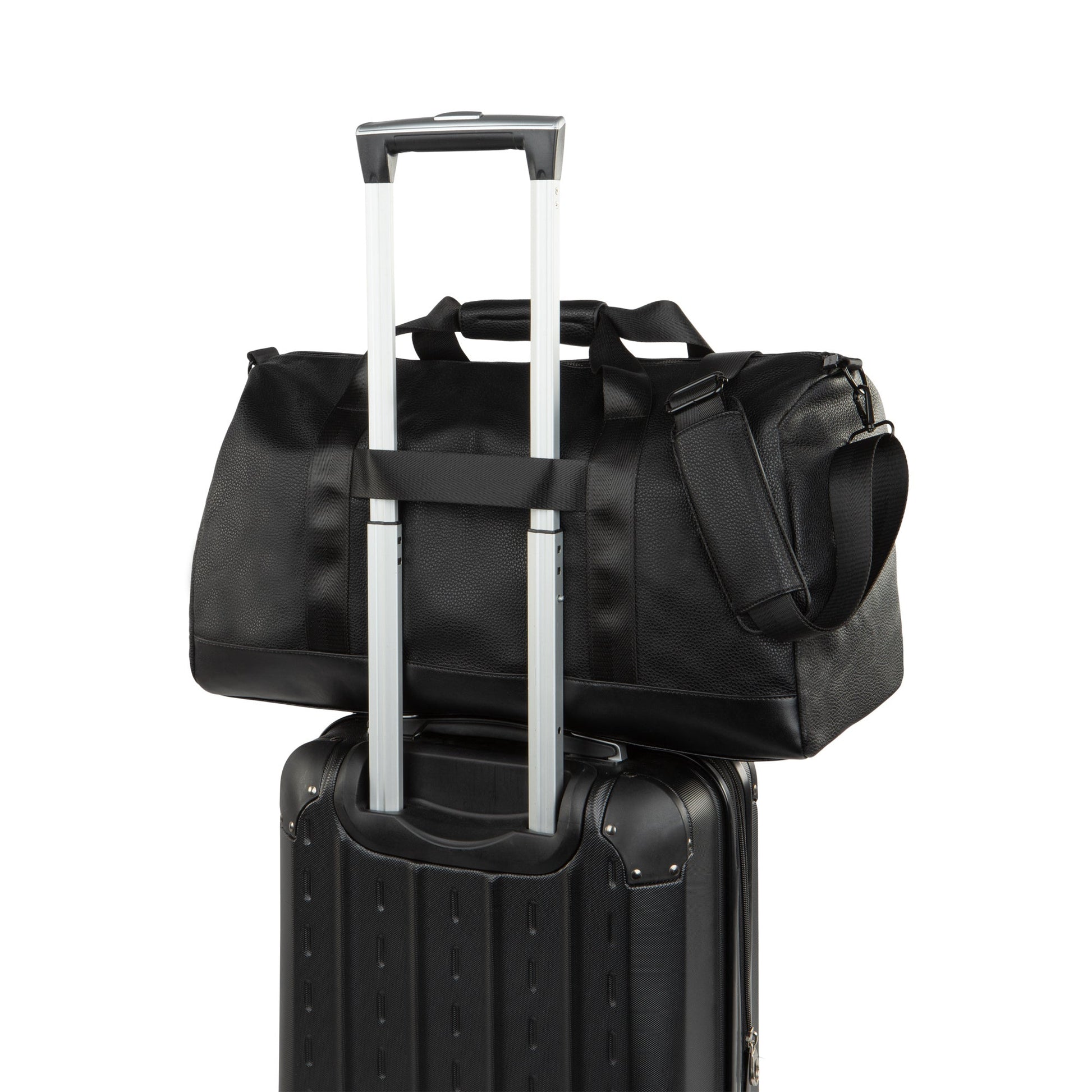 - Passe-valise pour chariot : Le passe-valise pour chariot vous permet de glisser le sac week-end sur la poignée télescopique de votre valise, facilitant ainsi vos déplacements avec plusieurs sacs.