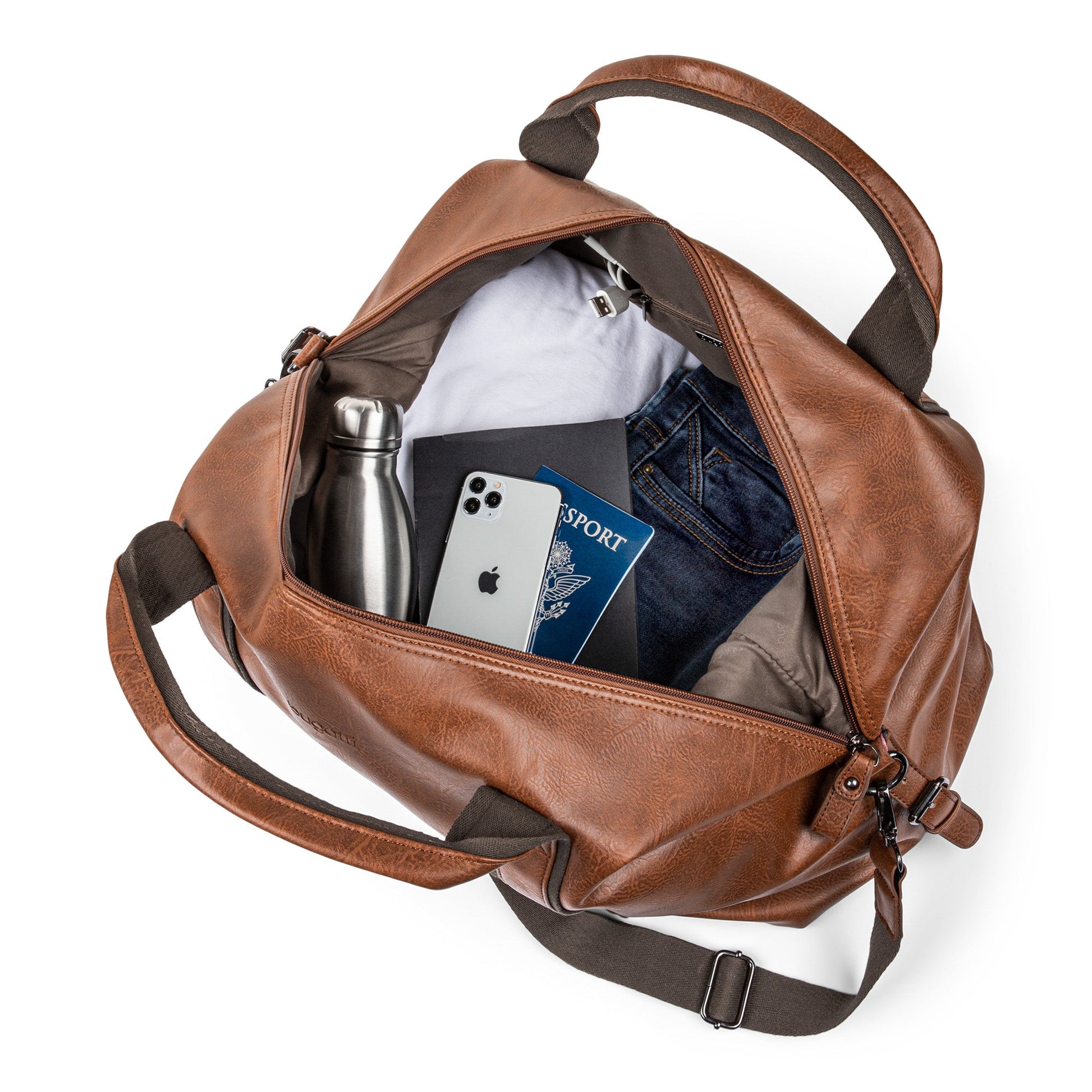 - Restez organisé grâce au compartiment extérieur zippé facile d'accès. Fabriqué avec un mélange de garnitures en similicuir et en toile, notre sac respire à la fois le style et la durabilité.