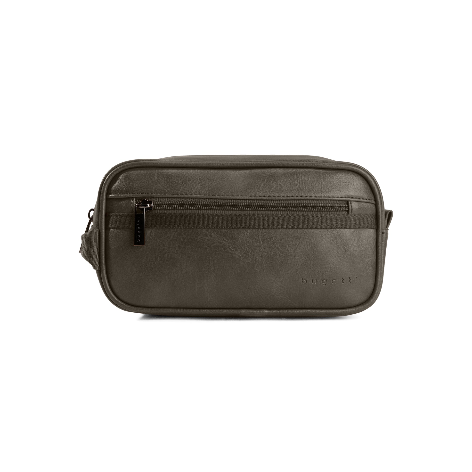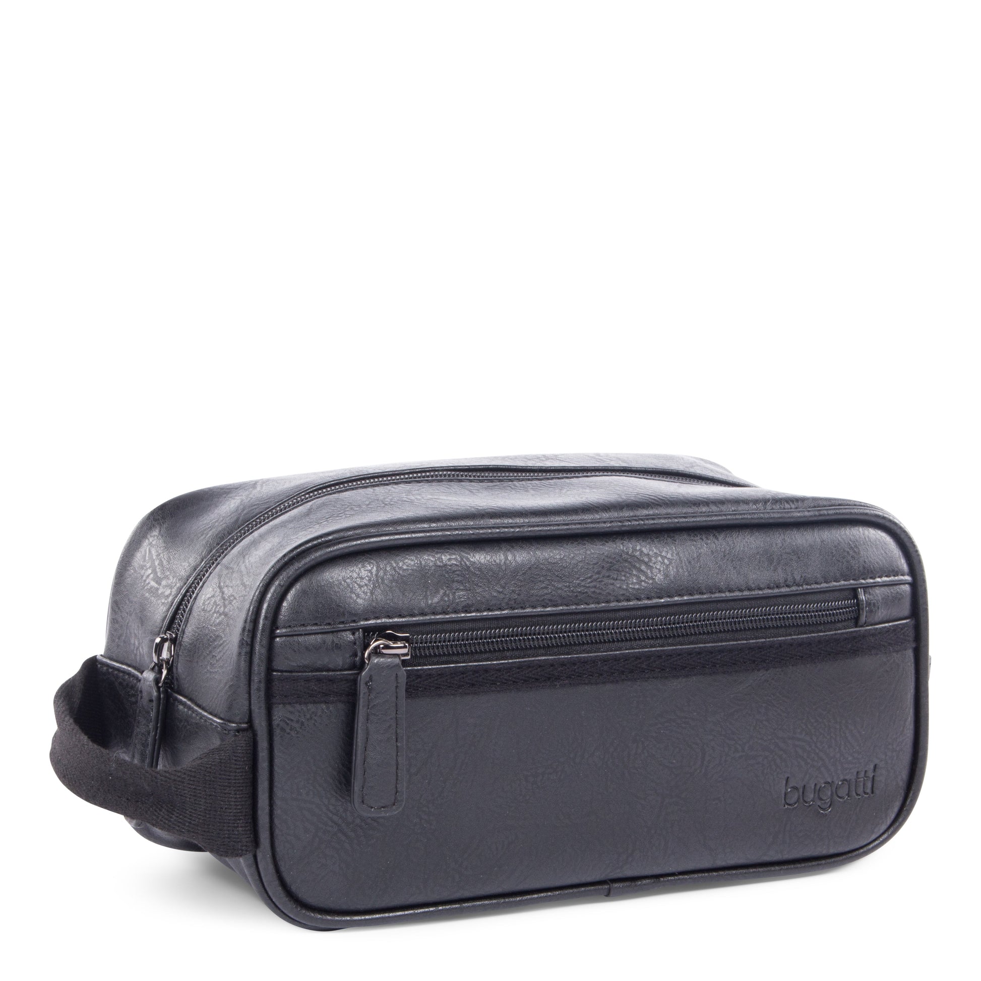 Fabriquée en cuir végétalien de première qualité ornée d'une bordure en toile, cette exquise trousse de toilette allie parfaitement style et fonctionnalité.