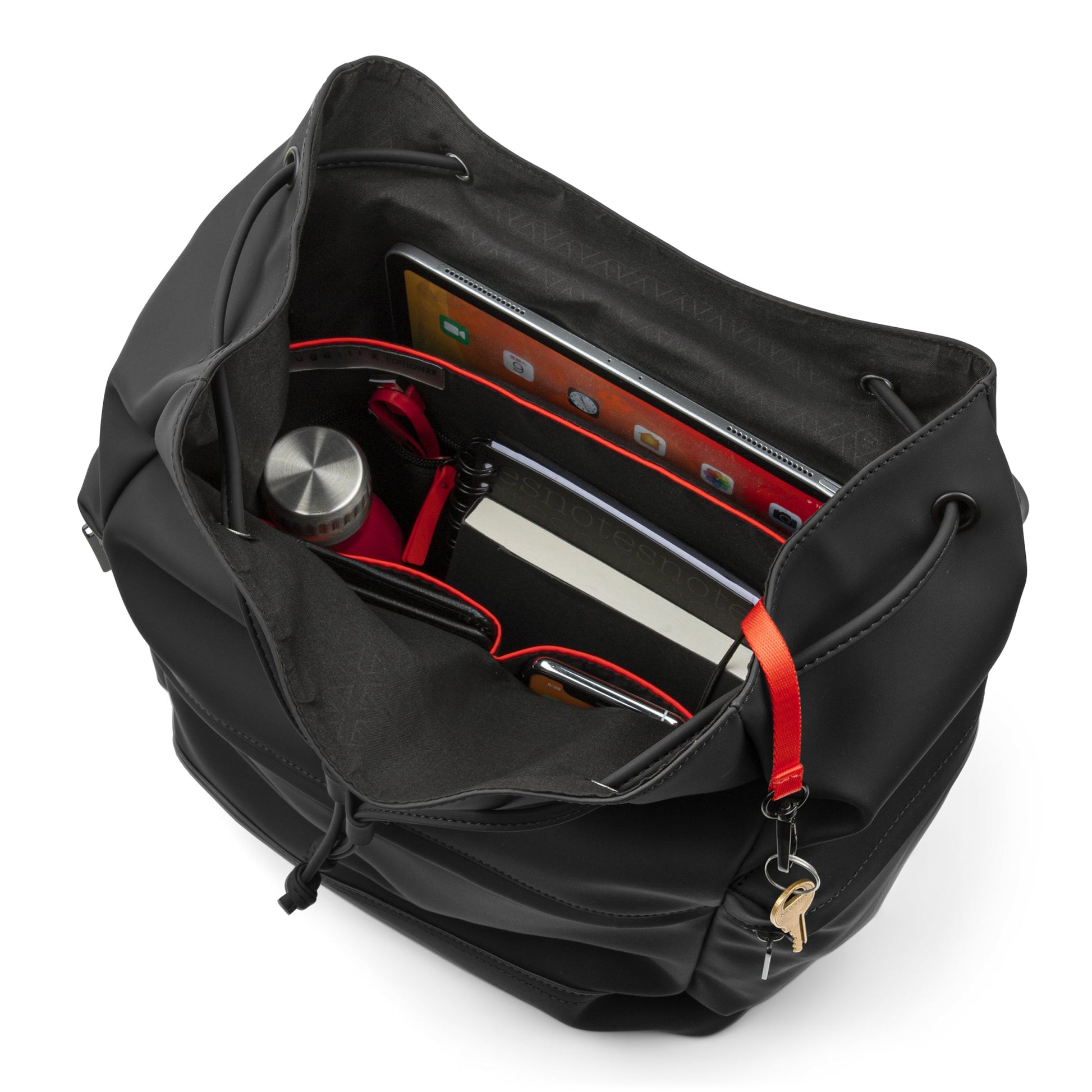This EDITION22 backpack is the perfect companion for your daily adventures. Its practical, multifunctional, and urban design will keep you stylish and prepared for anything. Made with water-resistant rubberized vegan leather, it offers durability and protection for your belongings.