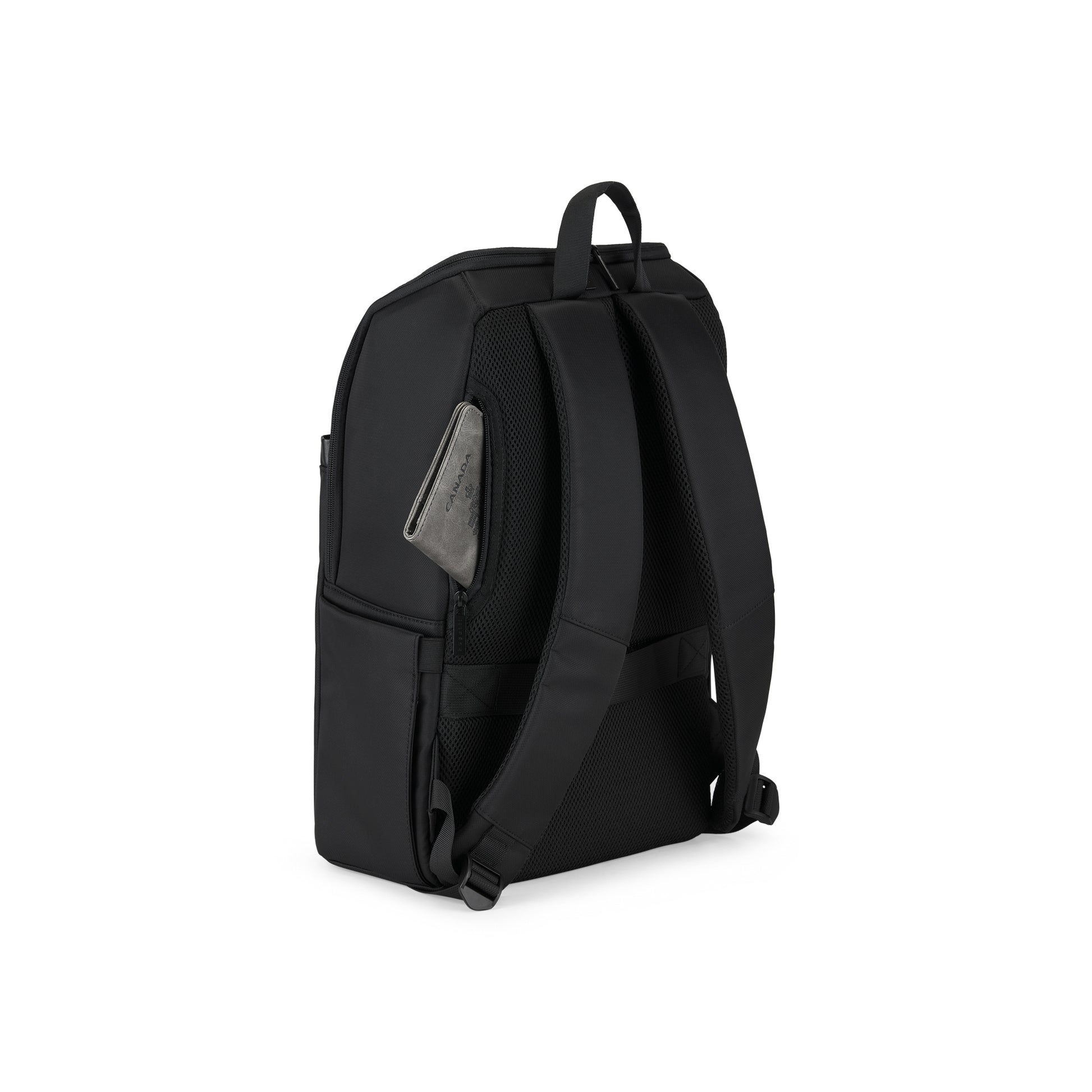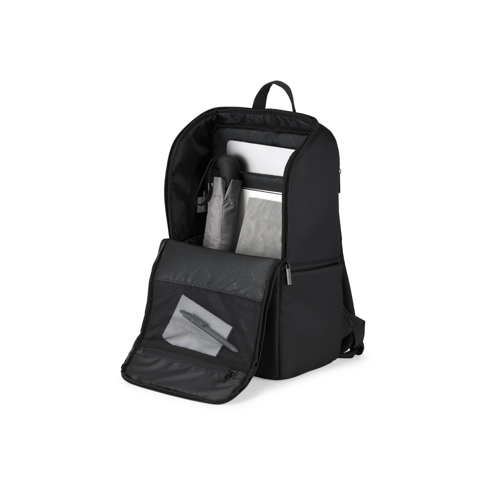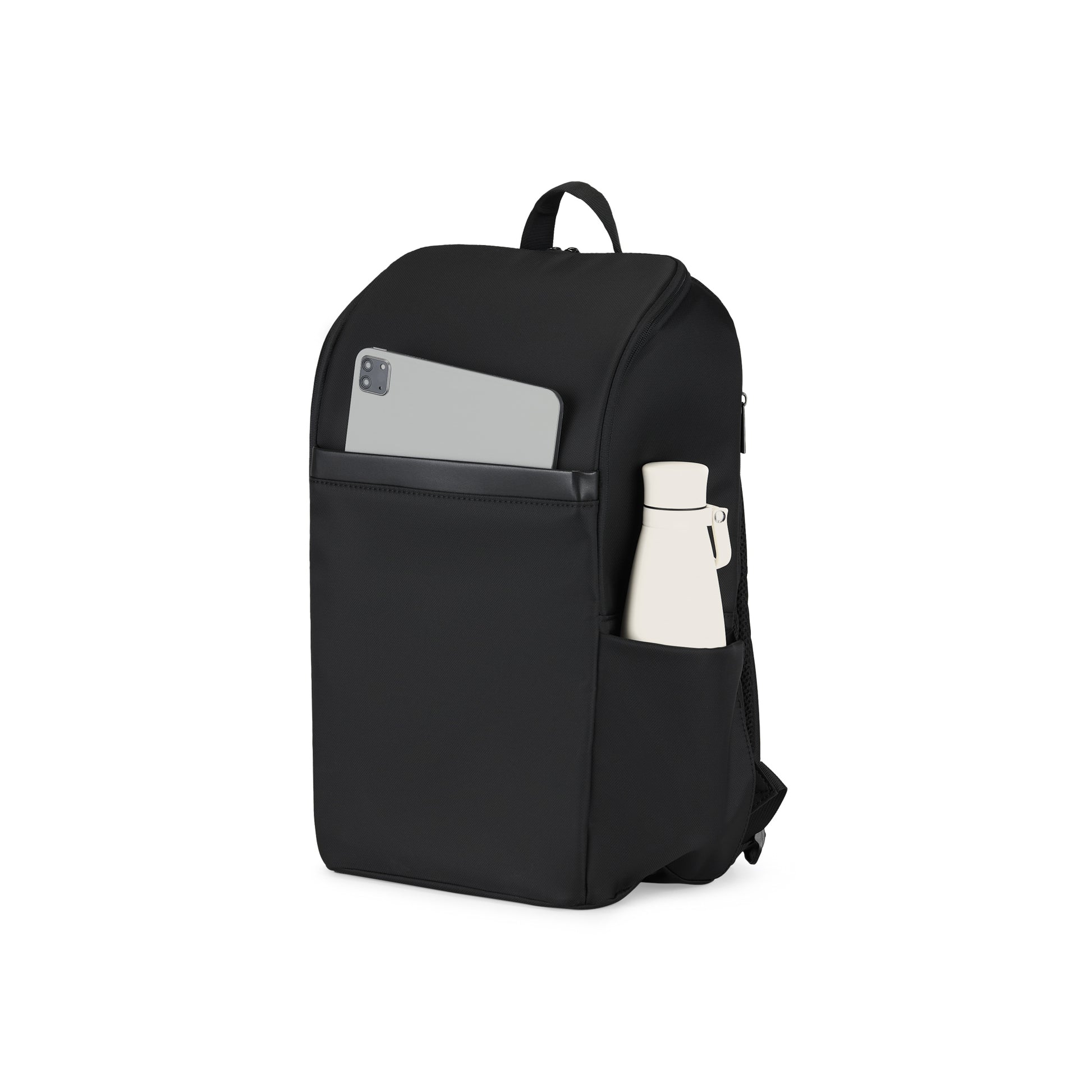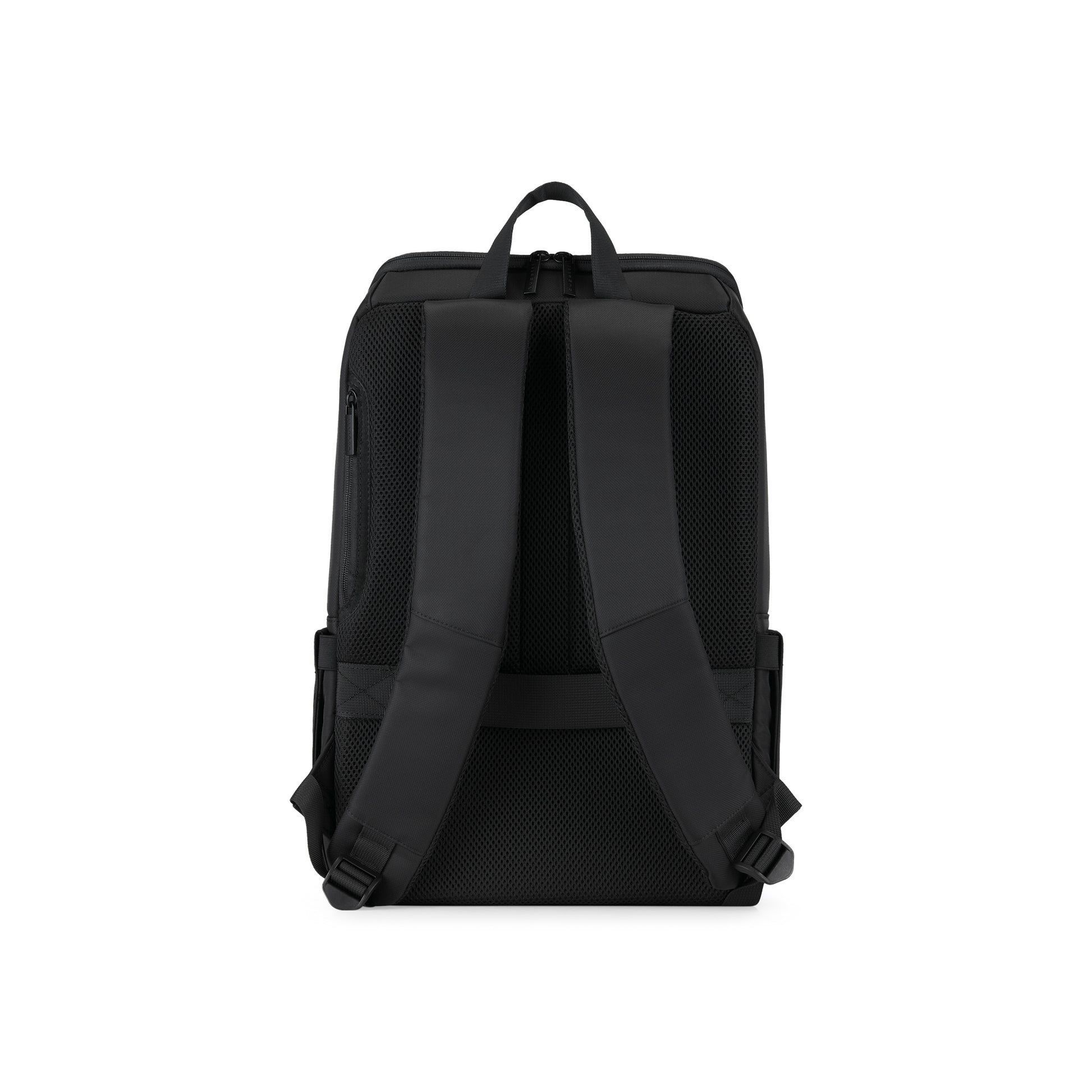 Discover a durable water-repellent nylon backpack with RFID protection, padded laptop compartment, multiple pockets, and comfortable padded straps for your essentials.