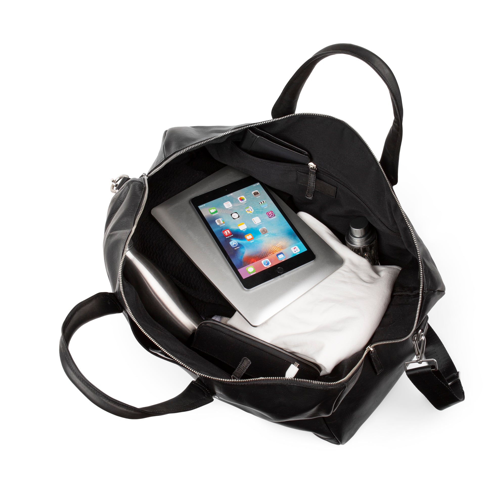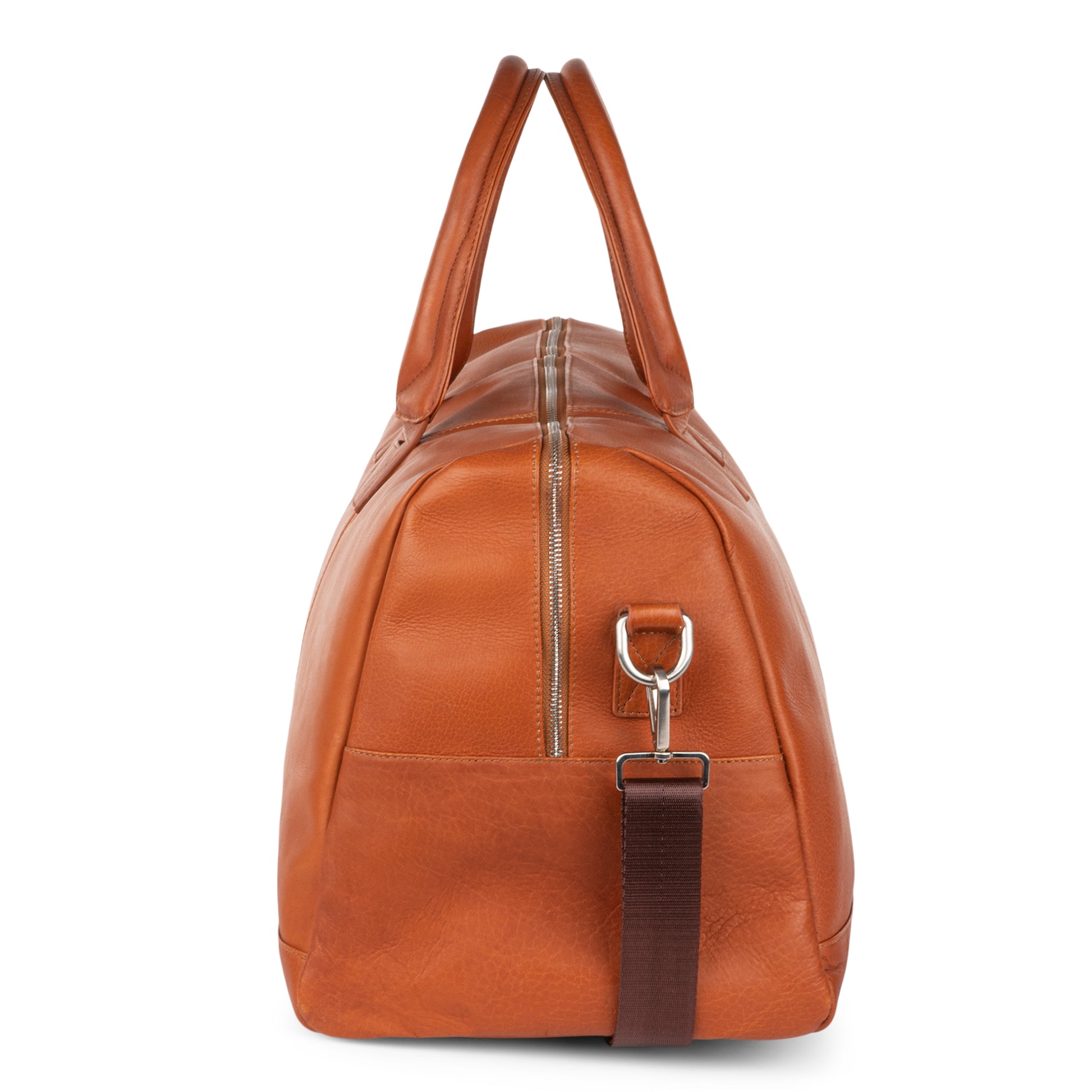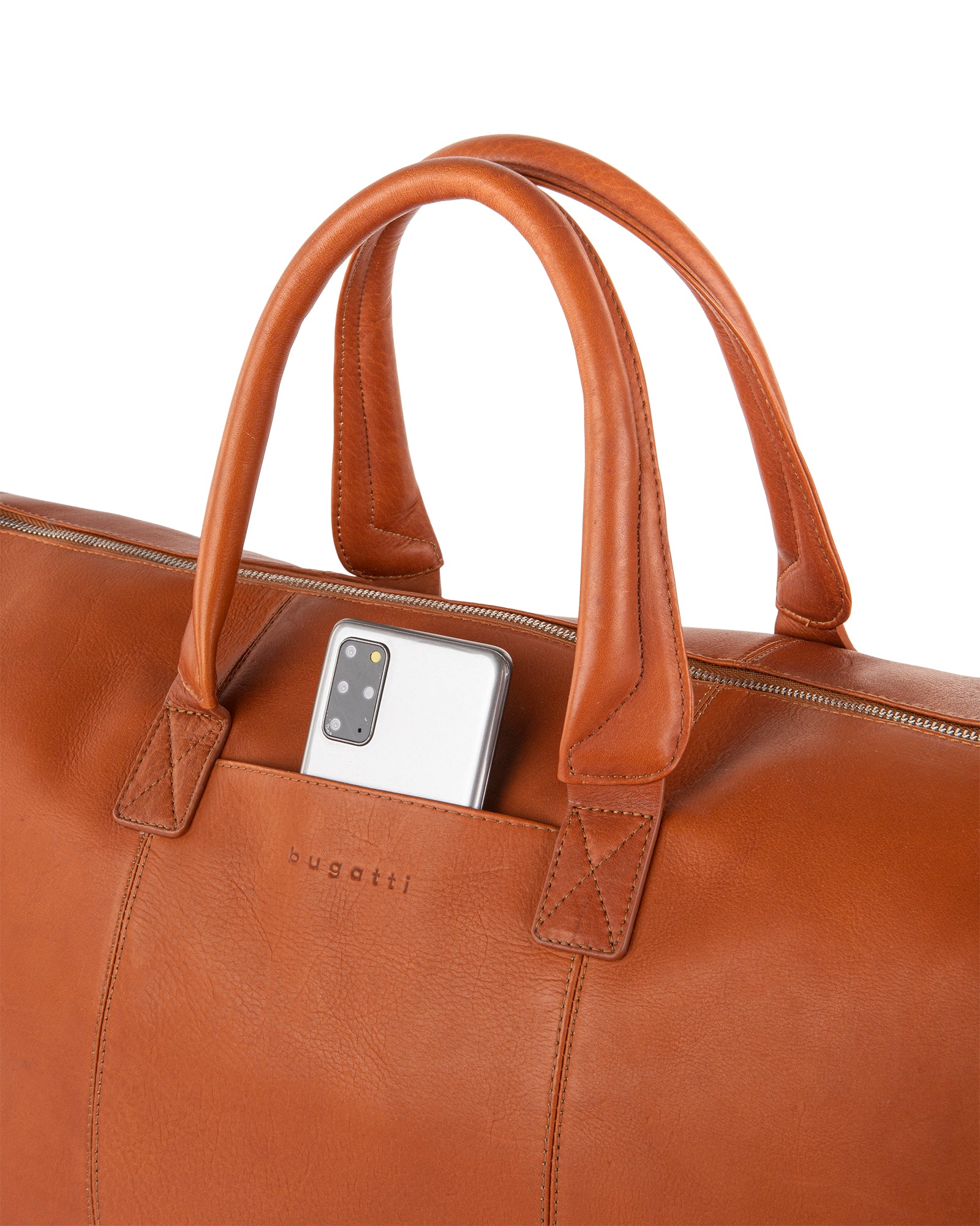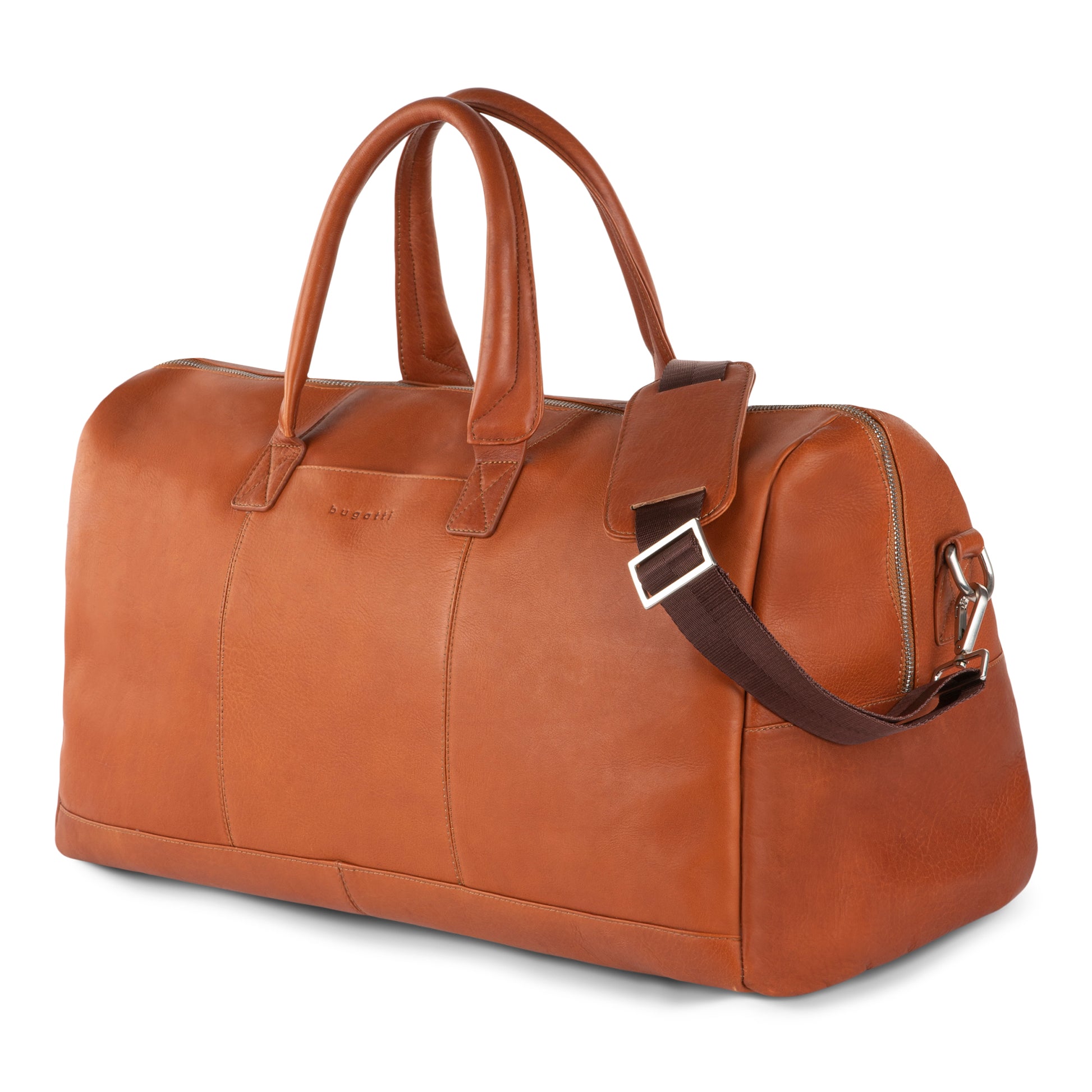 Discover the Bugatti top-grain leather Sartoria duffel bag featuring a dual zipper opening, shiny nickel hardware, multiple slip pockets, and a removable shoulder strap. Perfect for stylish and organized travel!