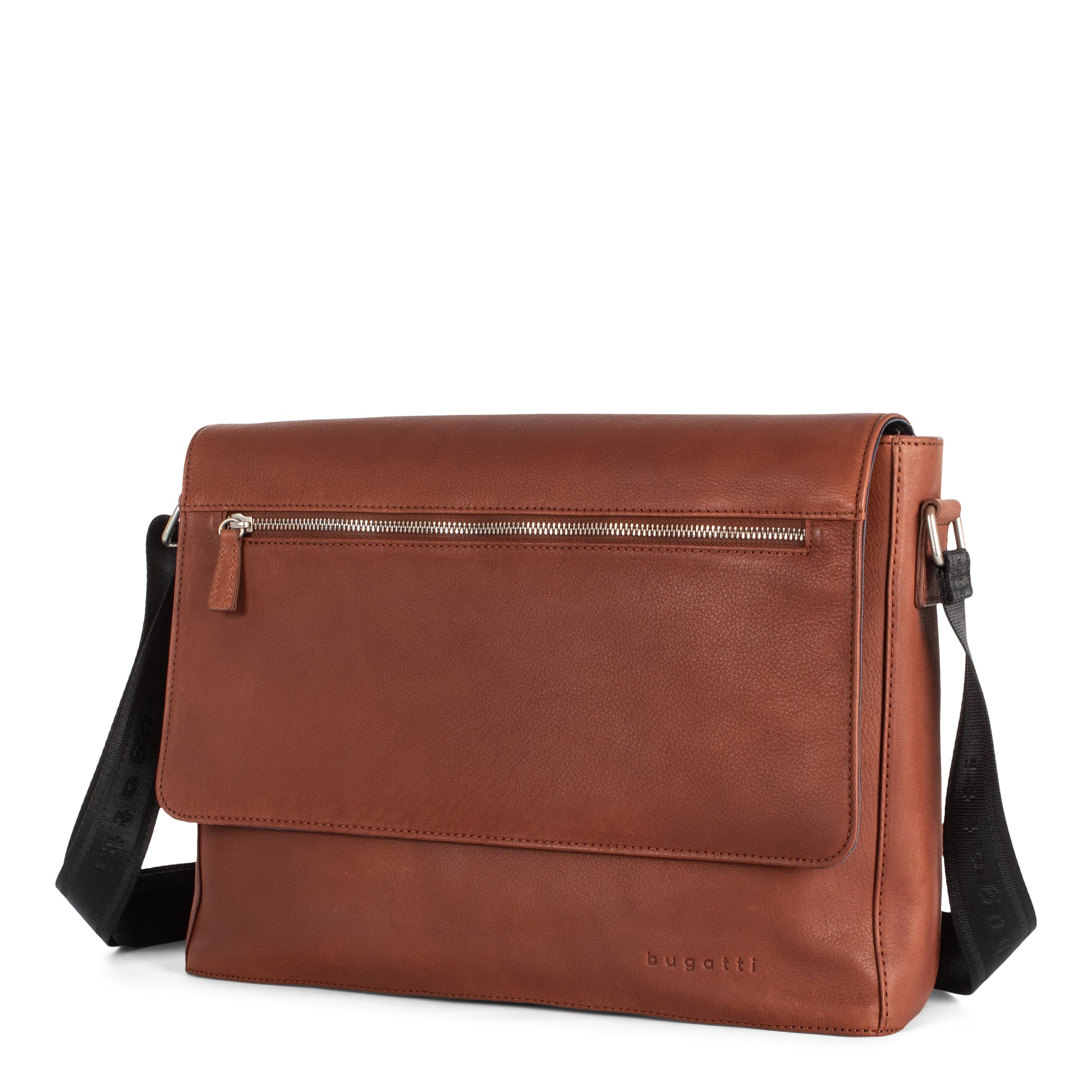 Discover our stylish Sartoria messenger bag crafted from top grain leather, featuring a padded section for laptops up to 15.6″, adjustable strap, and multiple storage compartments. With a flap closure and quick-access zippered pocket, it's perfect for business accessories. Complete with a Bugatti embossed logo for a touch of elegance.