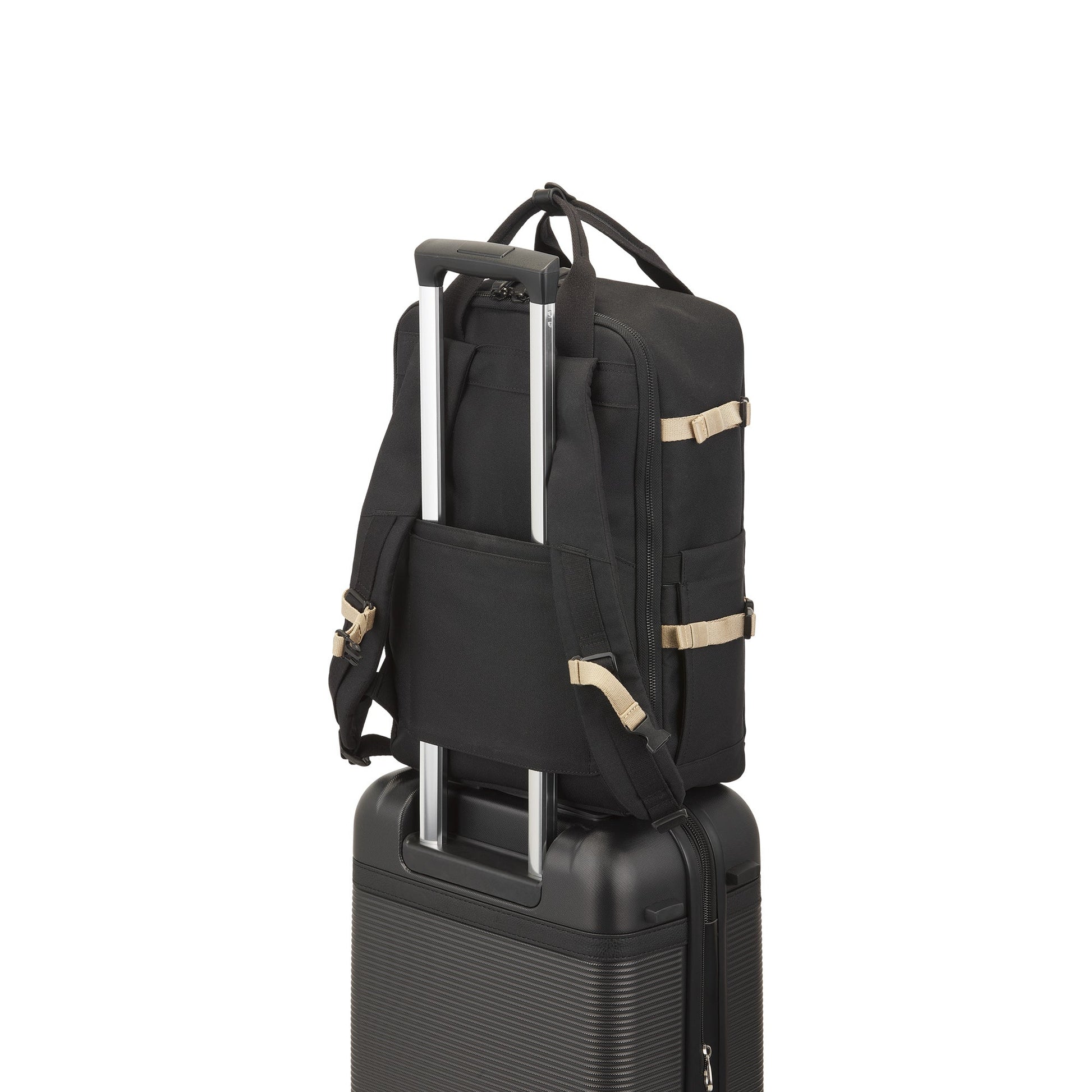 - Side compression straps allow you to reduce its volume and transform it from a carry-on backpack to a day-pack.